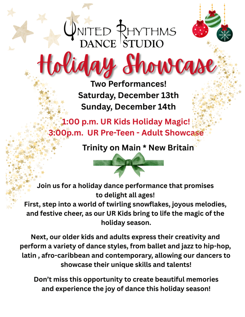 Whether you’re just beginning or looking to perform recreationally or professionally, United Rhythms provides a fun, inclusive, and supportive environment where dancers of all levels can move, grow, and thrive.